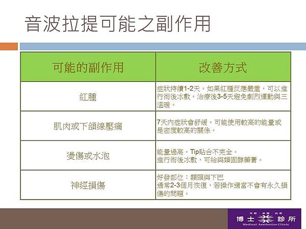 所以,舉凡細紋、法令紋、臉頰鬆弛、雙下巴、頸紋等,都可以利用音波拉皮的療程來改善喔!